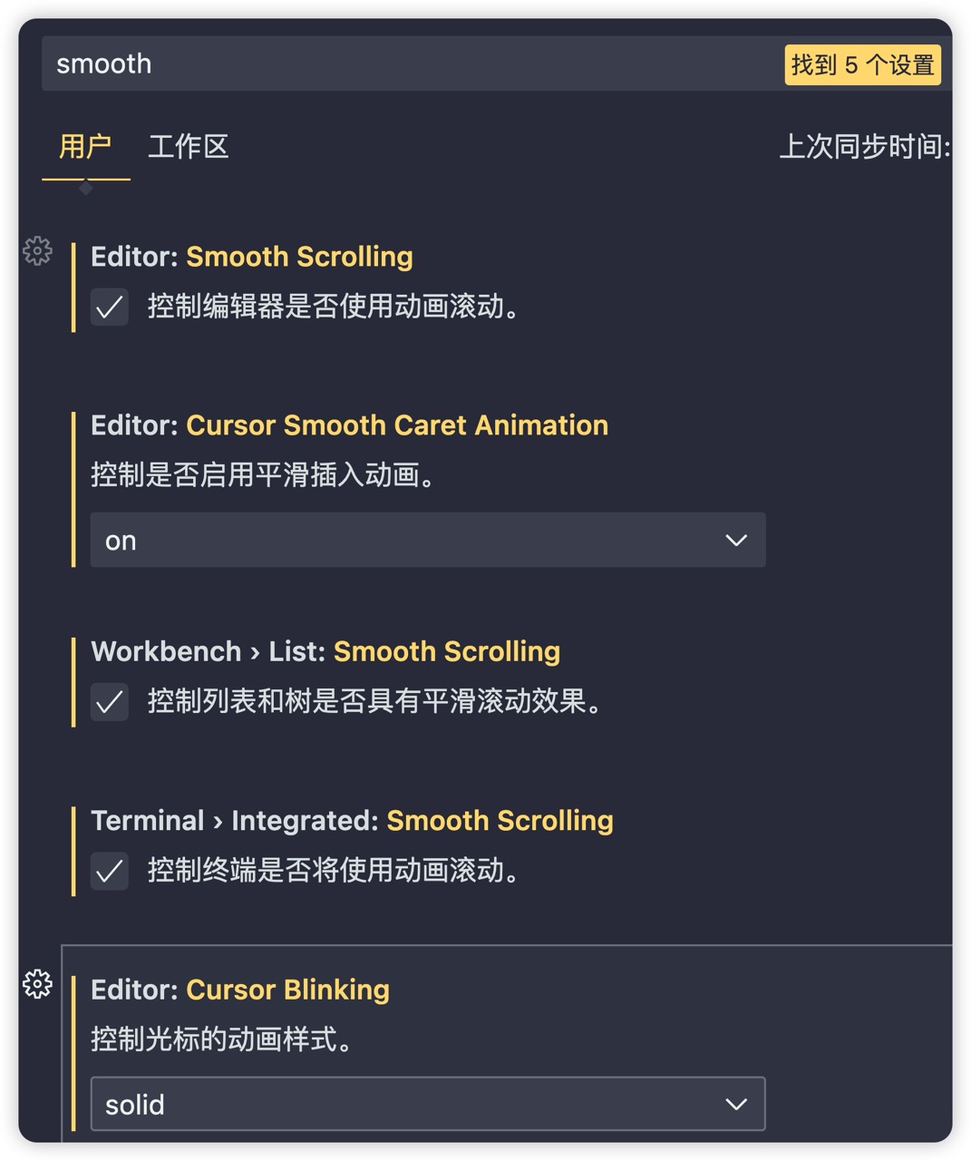 vscode 中使用 vim 时,默认情况下移动光标会有卡顿延迟,下面来设置平滑移动光标。